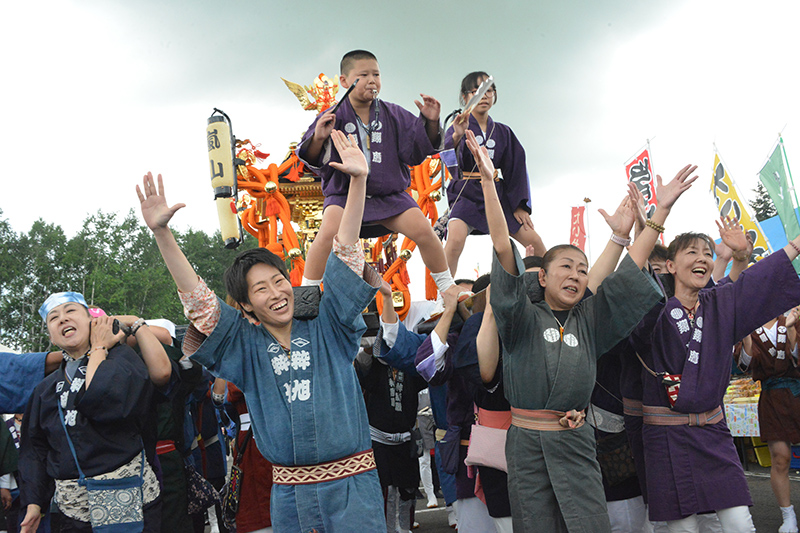 鷹栖神輿会嵐山による神輿渡御は圧巻です。地域住民が中心となり活動しており、身にまとった半纏や、逞しい動き、神輿の迫力、威勢のいい掛け声が見どころです。